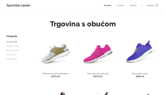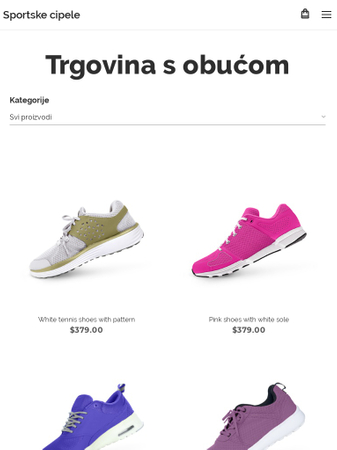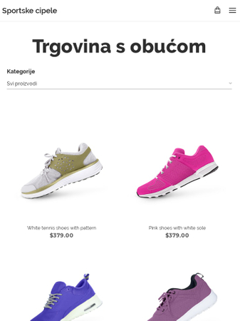 Prodajte obuću na internetu pomoću ovog posve novog predloška e-trgovine. Organizirajte svoje proizvode u kategorije, dodajte opise te ih u samo nekoliko trenutaka prodajte u Vašoj novoj e-trgovini.