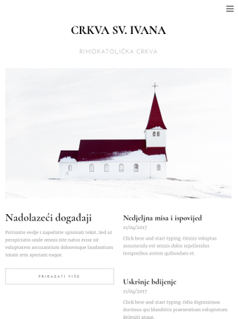 Odaberite ovaj impresivni predložak kako biste prezentirali svoju crkvu ili religioznu zajednicu. Jednostavan i čist dizajn čini ga vizualno privlačnim za sve članove Vaše zajednice, kao i za nove posjetitelje. Na njemu je dostupno sve od rasporeda bogoslužja, kalendara crkvenih događaja, kratke povijesti Vaše ckve do kontaktnih detalja.